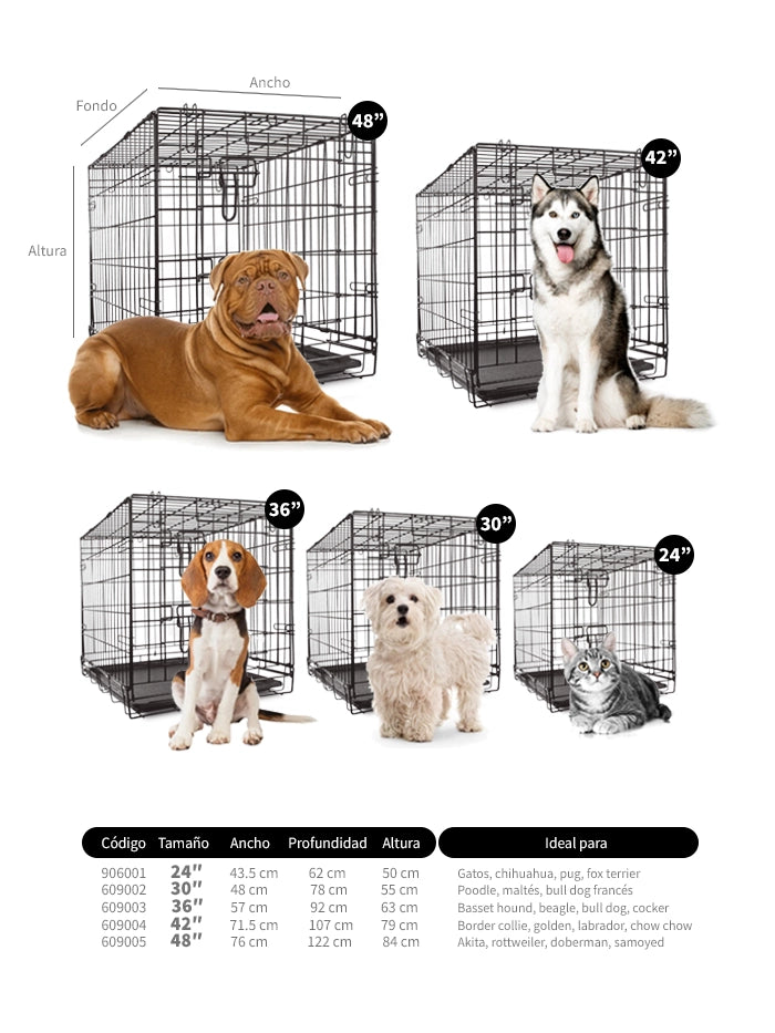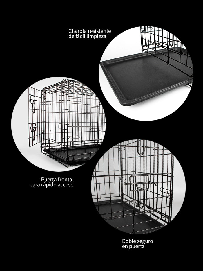 Jaula de alambre para mascota Fabricada con estructuras de acero Diseño plegable y fácil de transportar Ideal para viajes en automóvil 5 tamaños diferentes: 24″, 30″, 36″, 42″, 48″
