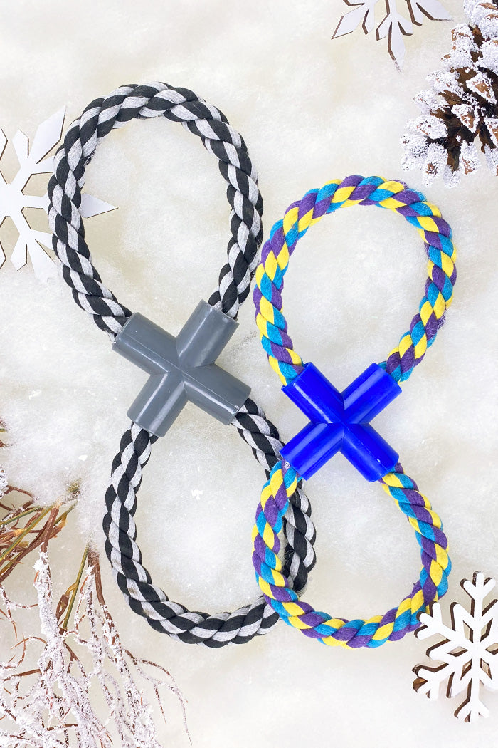 MORDEDERA DE CUERDA EN 8 Mordedera de cuerda 100% algodón. Fabricada con cuerda trenzada de 14.5 mm de diámetro. Conexión de cruz de polipropileno. Peso total: 90.5 g. Fácil lavado. Dos...