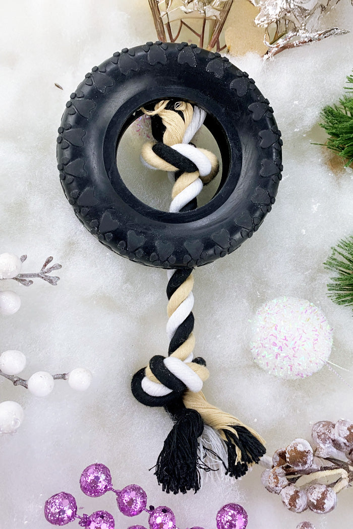 MORDEDERA DE LLANTA CON CUERDA • Mordedera fabricada de caucho natural• Muy resistente• Elimina la ansiedad de las mascotas• Fácil lavado• Dos medidas disponiblesChico: 5" - 13.5 cmMediano: 7" - 18 cm